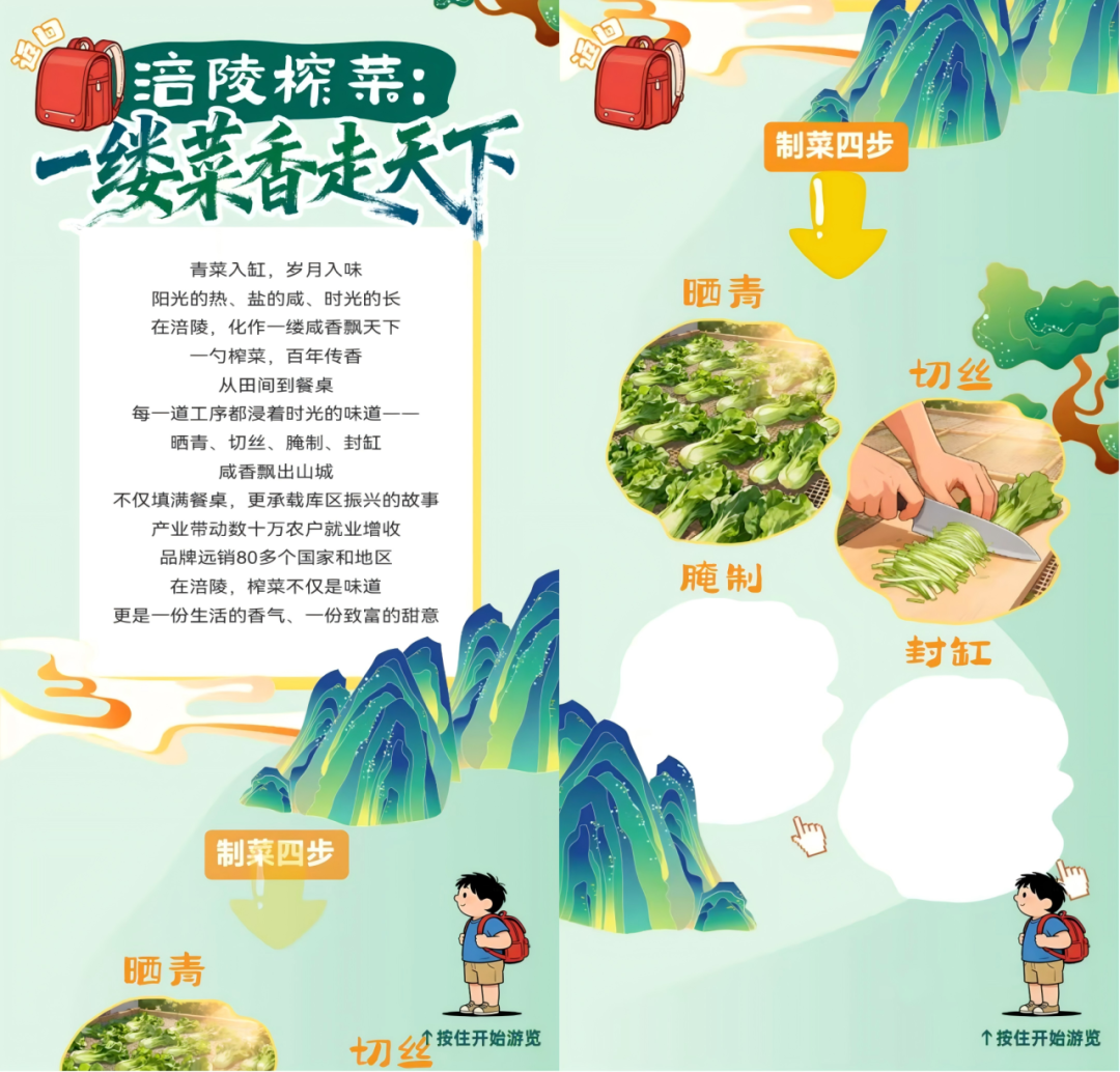 《一江丰景,多味三峡》,从味道出发,呈现一江水岸之上,产业稳步生长的当下图景。还可以选择你喜欢的三峡味道,生成专属海报,分享给朋友们,一起来“味”游三峡吧!