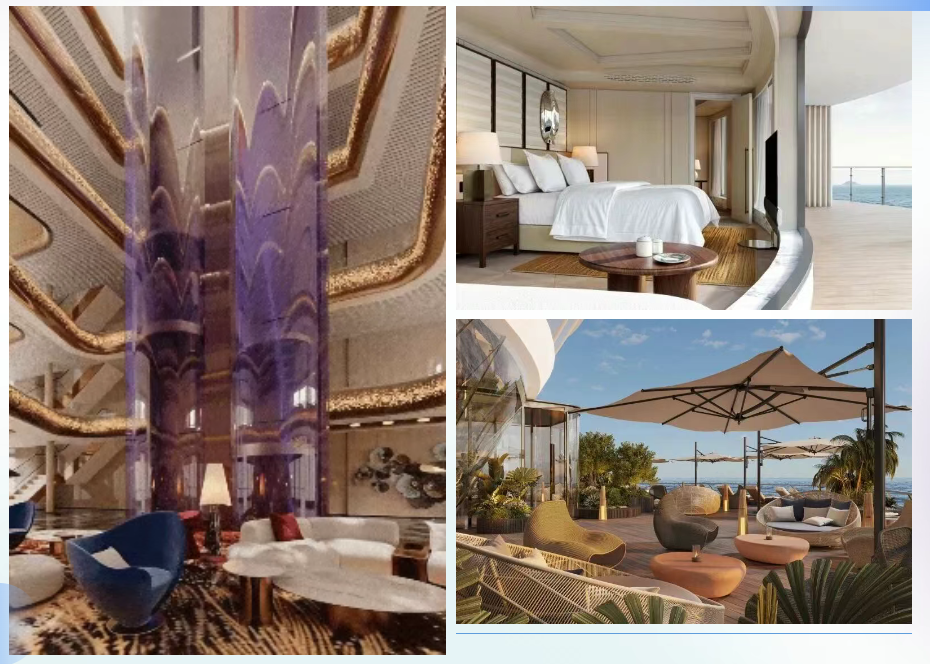▲长江行系列游轮 “长江行·极光”游轮总长约150米、型宽约23米,拥有7层甲板、近2万平方米多元活动空间,配置259间高端客房,最大载客650人。整船以“度假型、体验型、主题型”为核心理念,是一艘“移动的沉浸式五星级度假酒店”。