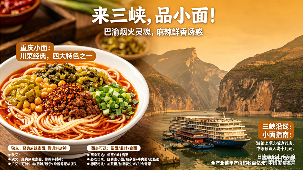 来三峡,看一江碧水,品一碗小面!麻辣鲜香里,藏着最地道的巴渝风情,这才是三峡旅行的完整打开方式~ |