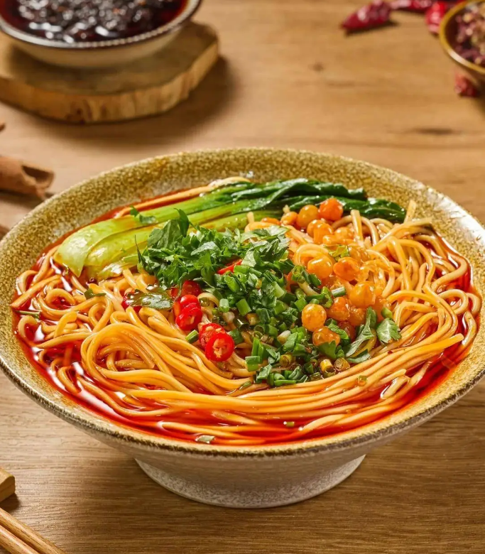 - 狭义:经典麻辣素面,不加肉浇头,靠调料封神;
