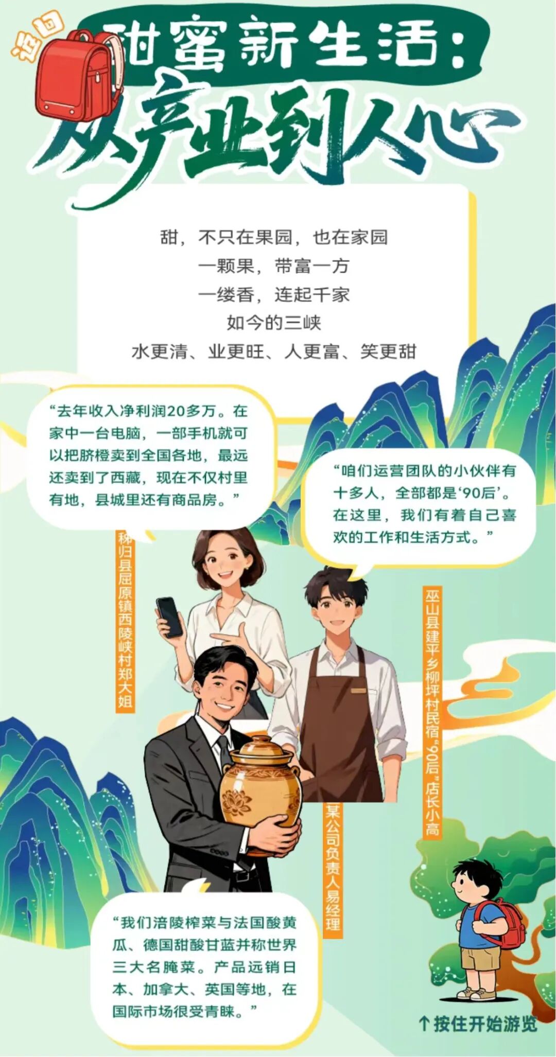 本期推出h5融媒体作品《一江丰景,多味三峡》,以“味道”为切口,串联三峡库区特色产业的发展脉络,通过互动化、沉浸式表达,带读者走进一江水岸之上,产业持续生长的图景。