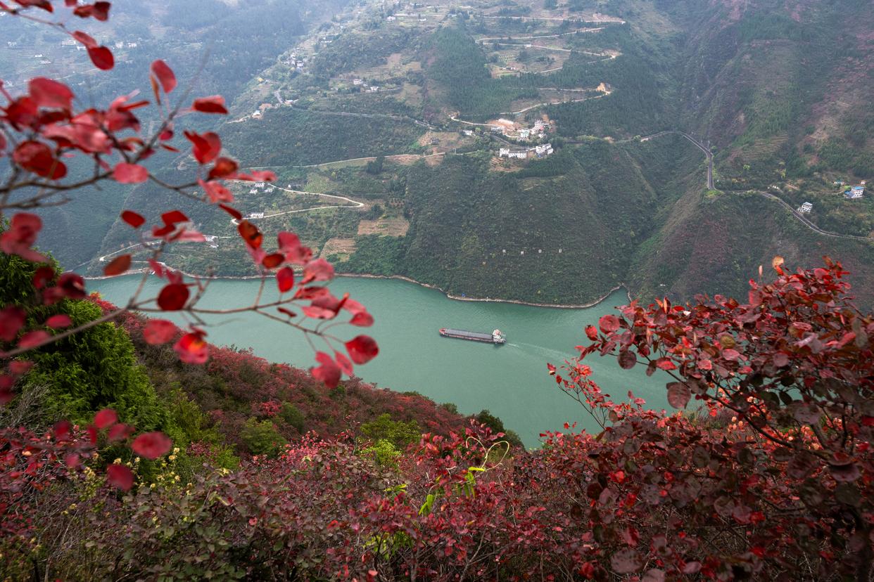 ![]() 11月30日,船舶行驶在红叶掩映下的长江三峡重庆市巫山县水域。新华社记者 肖艺九 摄