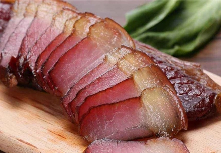 腊肉是湖北特产,也是土家族过年必备食物,其制法已有几千年的历史。每年腊月,家家户户准备年货,将吃不完的鲜猪肉用食盐配以一定比例的花椒、香叶、茴香、八角、桂皮等香料,腌制七到十五天,然后挂在烧柴火的灶头顶上,或吊于烧柴火的烤火炉上,利用烟火慢慢熏干。也有专门选用松柏枝、桔树皮或柴草慢慢熏烤的。熏后的腊肉色泽鲜明,呈暗红色,肉质透明、干爽、富有弹性,别具腌腊风味。