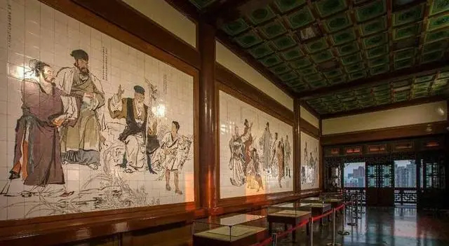 三楼大厅的壁画为唐宋名人的“绣像画”,如崔颢、李白、白居易等,也摘录了他们吟咏黄鹤楼的名句。 [26] ![]() 四楼