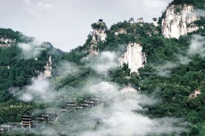 宜昌市三峡人家风景区处于两坝一峡区域,该区域属湿润亚热带季风气候,具有冬暖春旱、夏热、秋多雨、湿度大及云雾多等特征。同时景区地处西陵大峡谷之中,夏热时多有风流强涌和流动江水对气候影响,雨量充沛,较之整个三峡地区的炎热气候,气温要低2~3摄氏度,光热充足、无霜期长、四季分明、雨热同季等为西陵大峡谷地区的基本特征。 全年太阳总辐射量在98x10³~103x10³坎德拉每平方厘米之间,年平均日照1669.3小时,年平均气温16.9摄氏度,≥10摄氏度积温5408摄氏度,无霜期292~320天,年降雨量1100~1490毫米。 主要景点 宜昌市三峡人家风景区不仅旅游资源独特丰富,而且森林植被良好,面临长江,高山峡谷、层峦叠嶂、空气清新,人文传说源远流长。 景区“湾急、石奇、谷幽、洞绝、泉甘”,它包括龙进溪、天下第四泉、野坡岭、灯影洞、抗战纪念馆、石牌古镇、杨家溪漂流等景区。