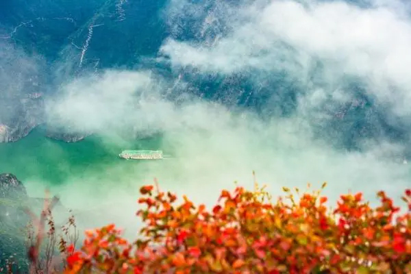 ![]() ![]() 游船驶过壮丽瞿塘峡,两岸层林尽染。(王传贵摄)