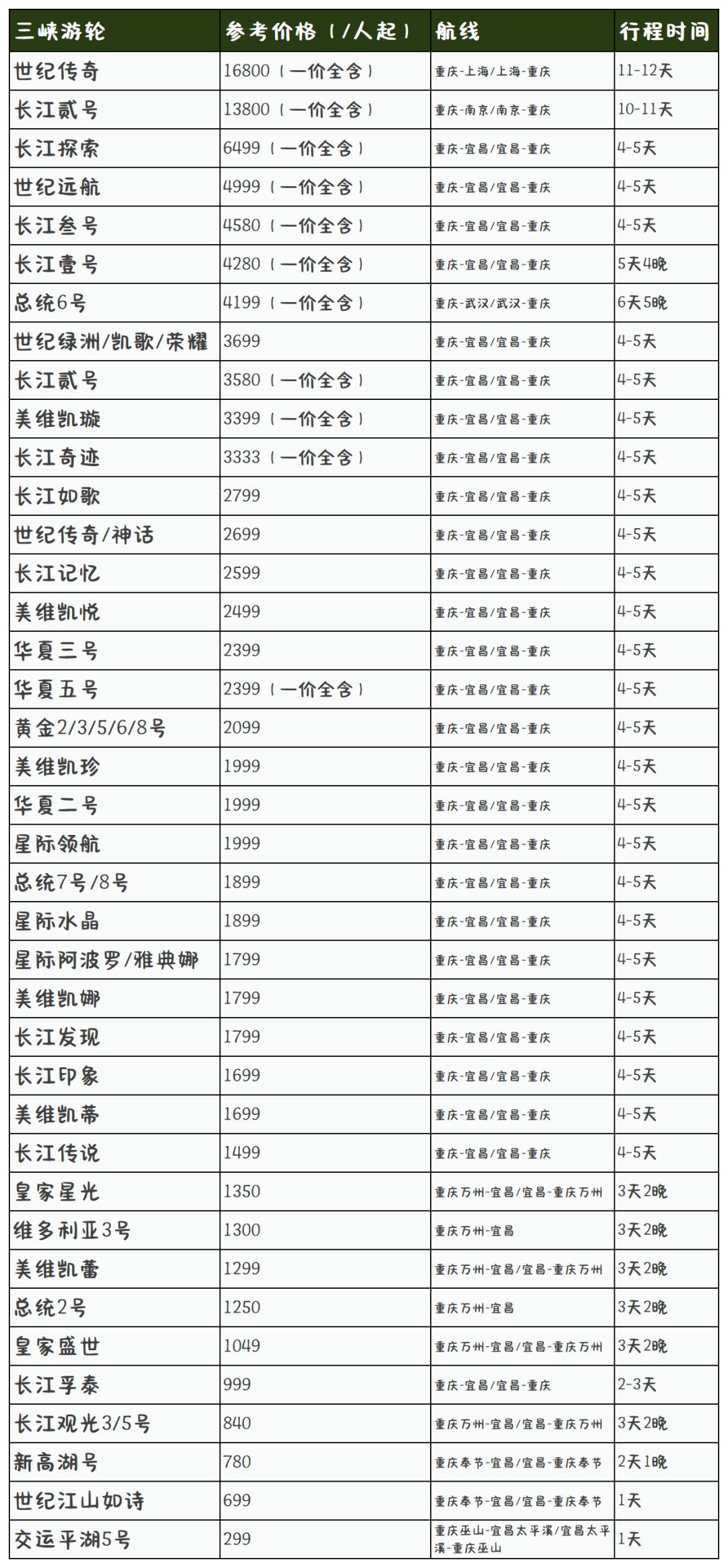 备注一下价格可供参考;三峡游轮非交通工具而是旅游产品,受市场、季节、余位等因素影响,价格不绝对固定,准确价格请以实际购票为准。