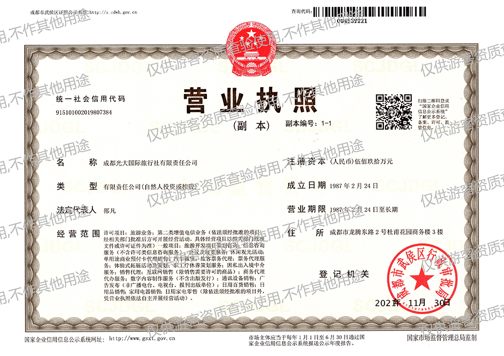 根据《旅游法》规定,对线上旅行社业务经营许可证/营业执照信息公示如下: