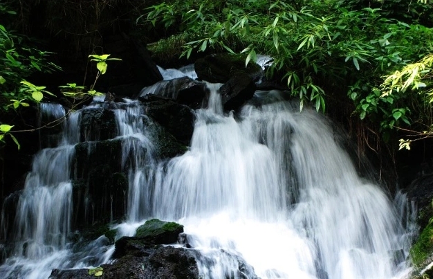 沿着小路向溪谷深处前进,“曲径通幽处,溪边草木深”,两岸植被繁茂,郁郁葱葱,花香扑鼻,溪流碧波荡漾,清澈见底,妩媚多情,不时传来清脆的鸟鸣声,似乎在欢呼远道而来的客人。久居繁华的都市,忽然身处“两岸猿声啼不住”的深山幽谷中,感受着“鸟鸣山更幽”的清闲,仿佛来到了桃源仙境一般。前面的溪谷中,几块巨石横卧溪水中,一左一右,正好守住了溪谷,在龙门之前的一块岩石上,有一条形似鲤鱼的天然小鱼,头朝溪里,奋力跳跃,好像要跳过龙门,到三峡人家去做客,故叫“